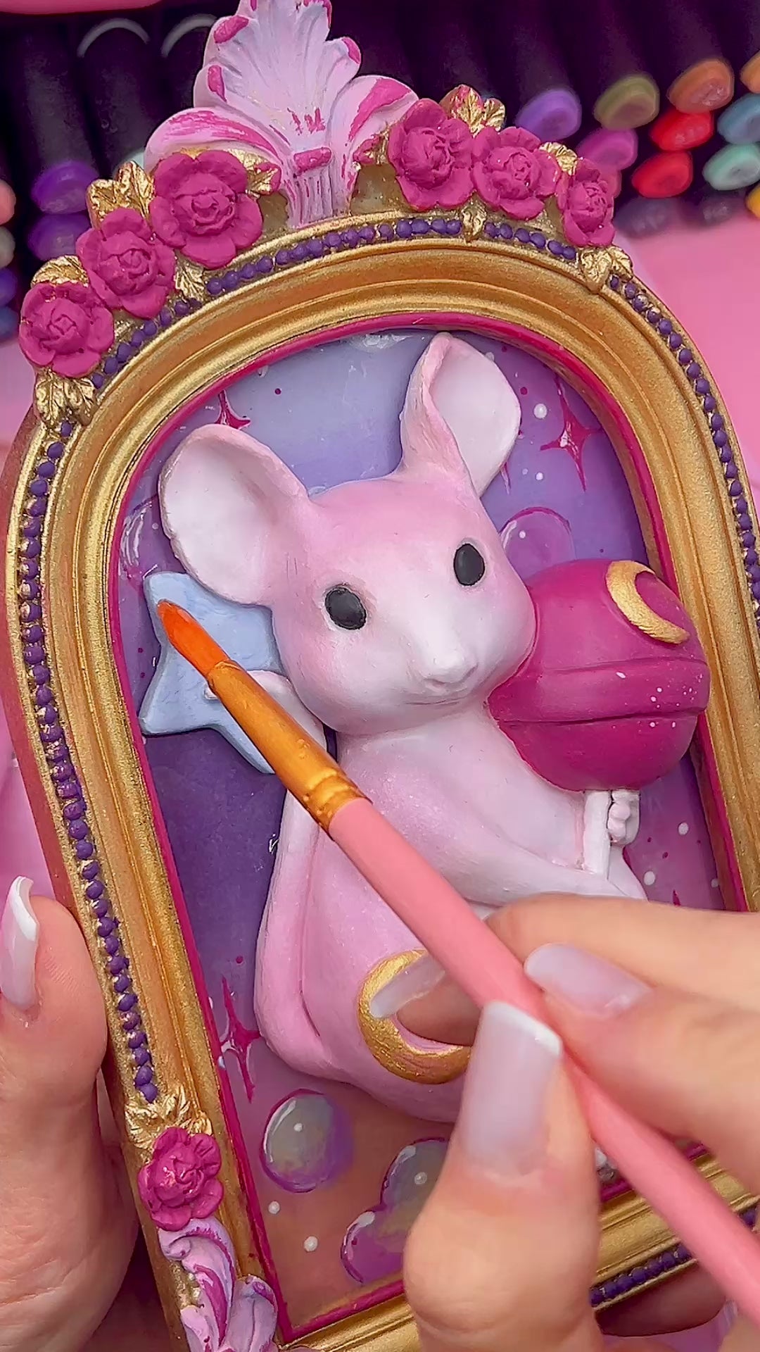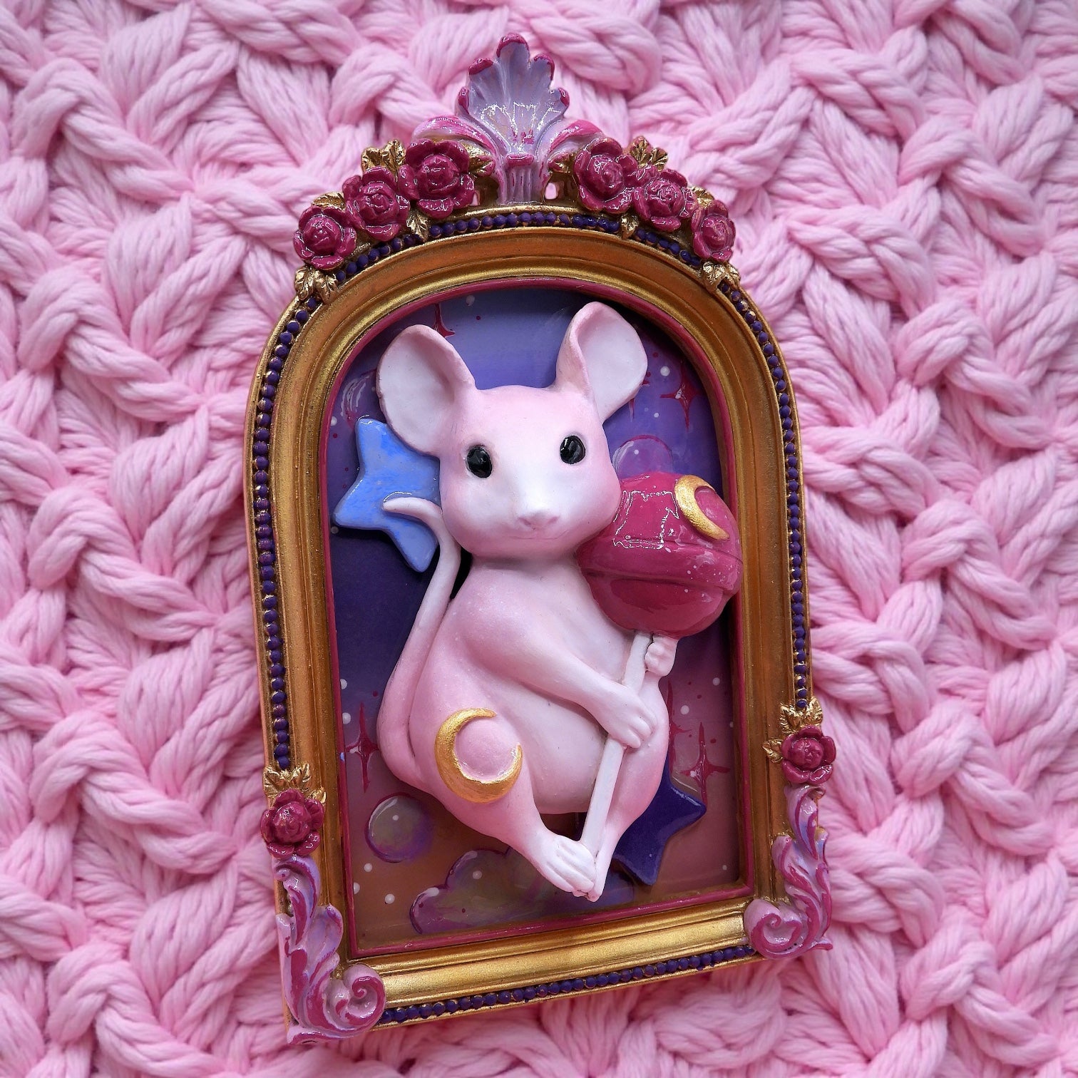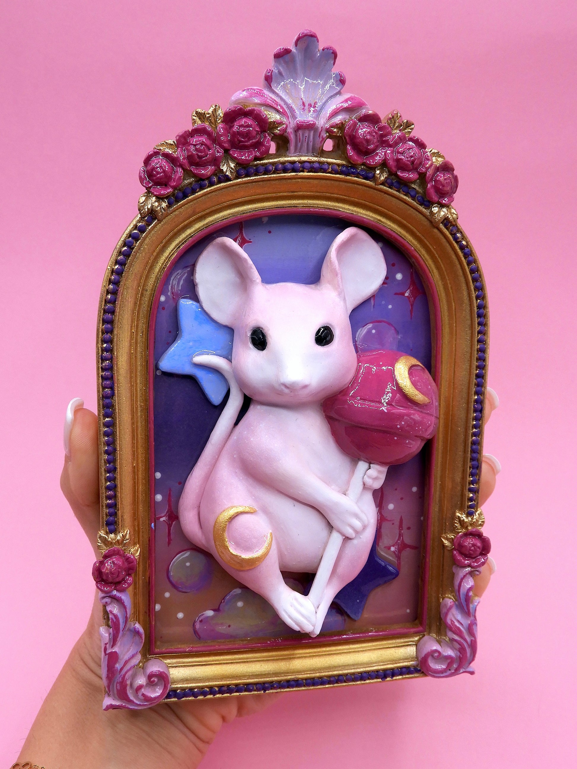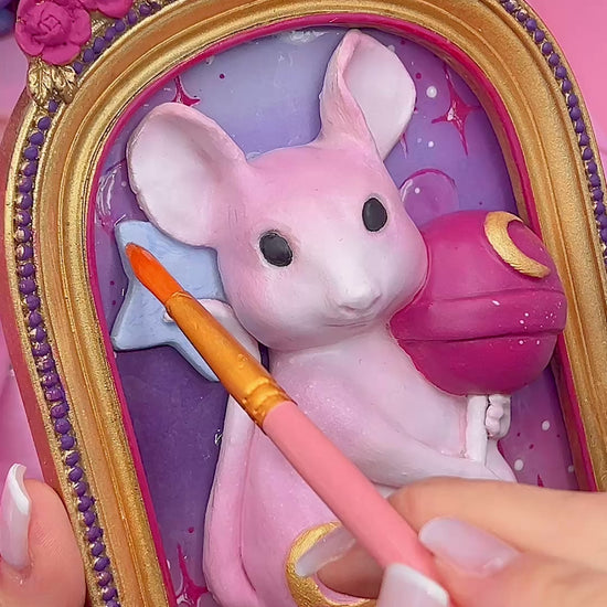 Moonlit Lollipop Mouse – A Whimsical Dreamscape Sculpture in Pop Surrealism